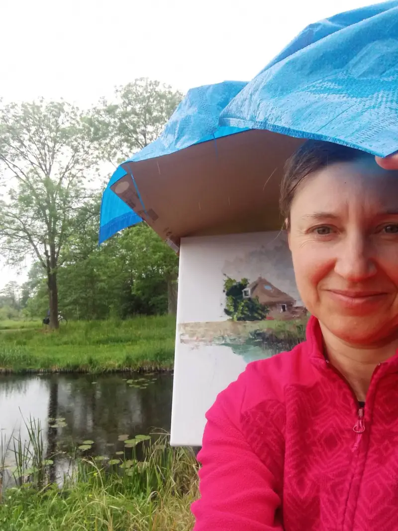 Rainy day, I wanted so badly to paint. Summer in the Netherlands is so wet. The paintings implies this feeling of the beginning summer, new grass, wet air and beautiful old Dutch countryside.