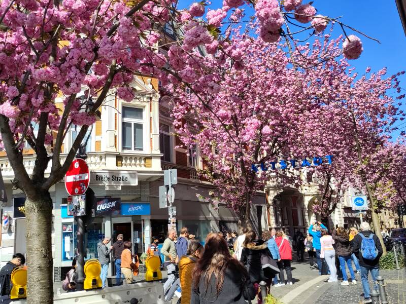 This charming old street is completely overgrown with decorative cherry trees, creating a magical pink canopy when they bloom.