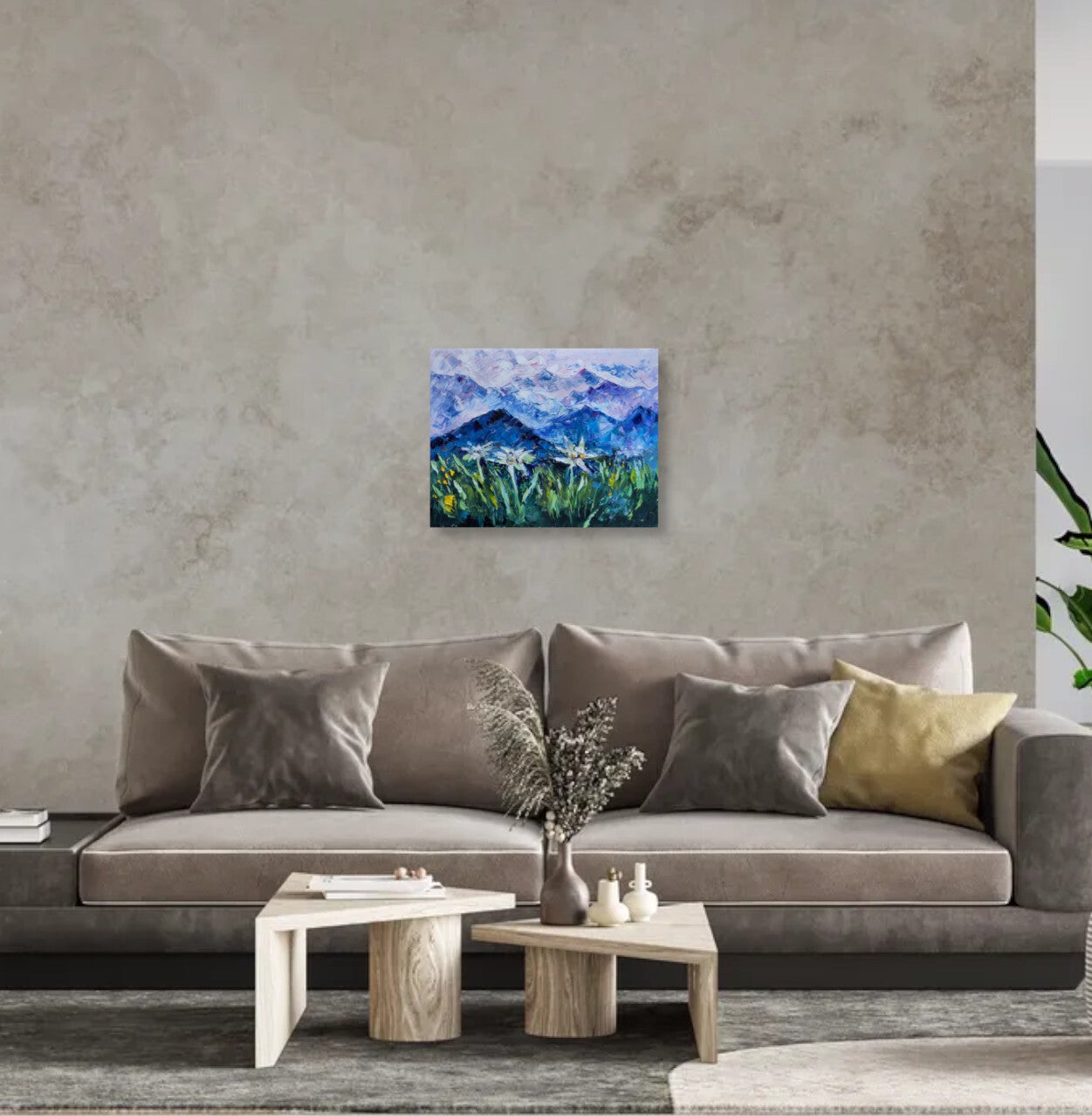 Edelweiss Kunst Originalkunstölmalerei Blume Kunstwerk Alpine Landschaft