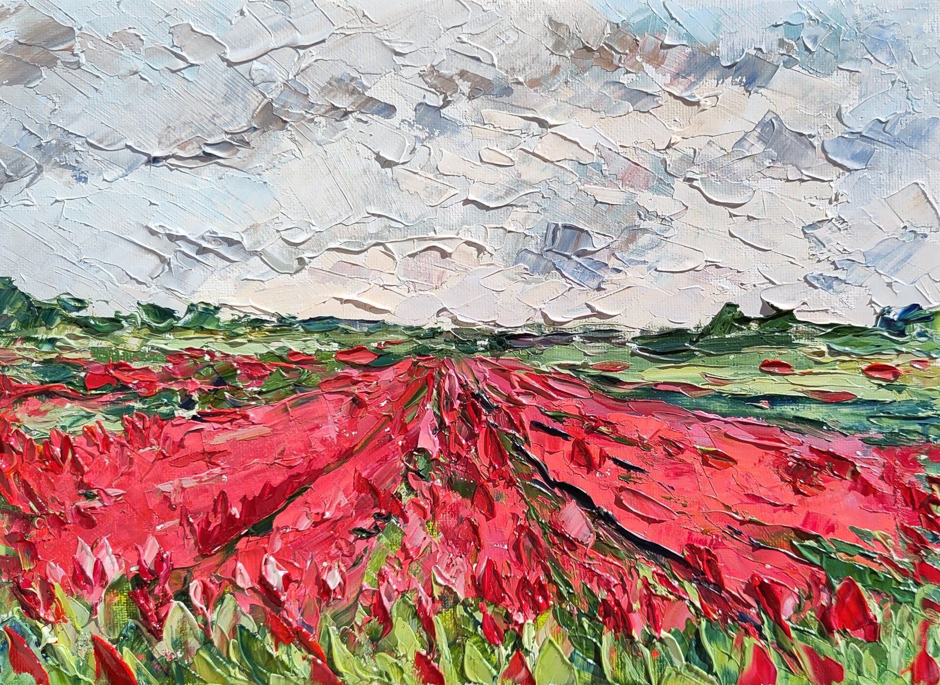 Tulpenveld in Nederland Originele kunst Olieschilderij Canvas kunst 30 x 40 cm