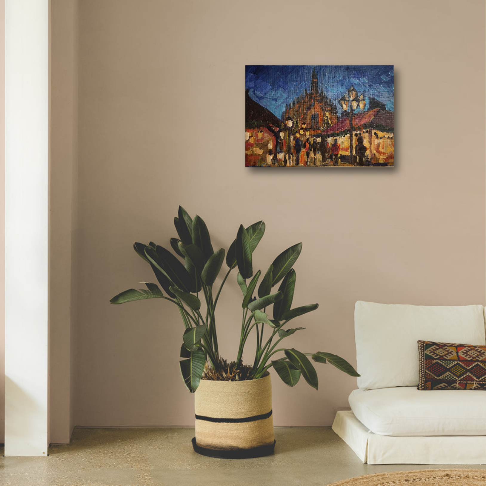 Ölgemälde Nürnberger Weihnachtsmarkt Original Kunst, Handgemalt, Winter Stadtansicht, Weihnachtsdekoration