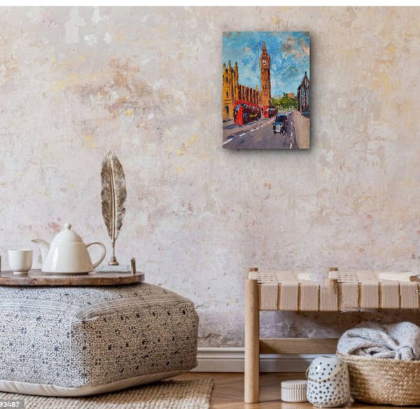 Big Ben Oil Painting: London Bus Art, England Artwork