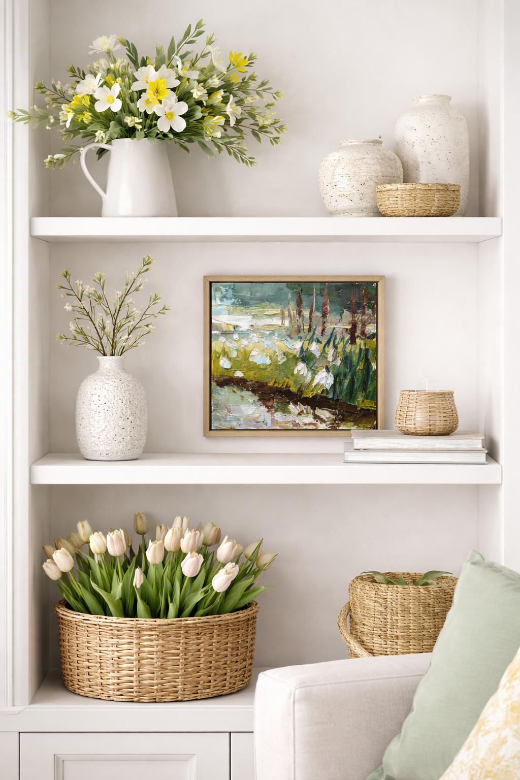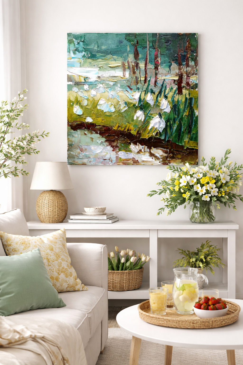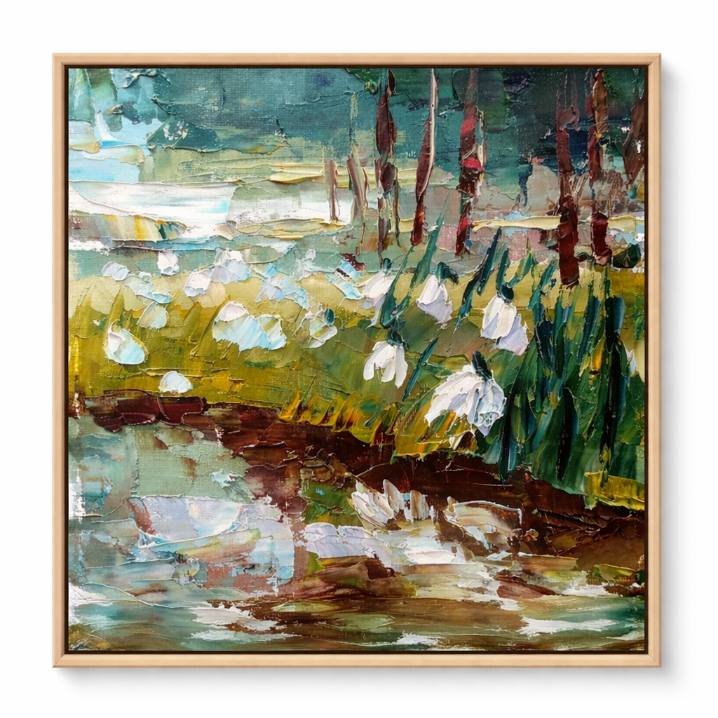 Snowdrop Art Original Oil Painting | Spring Landscape Art